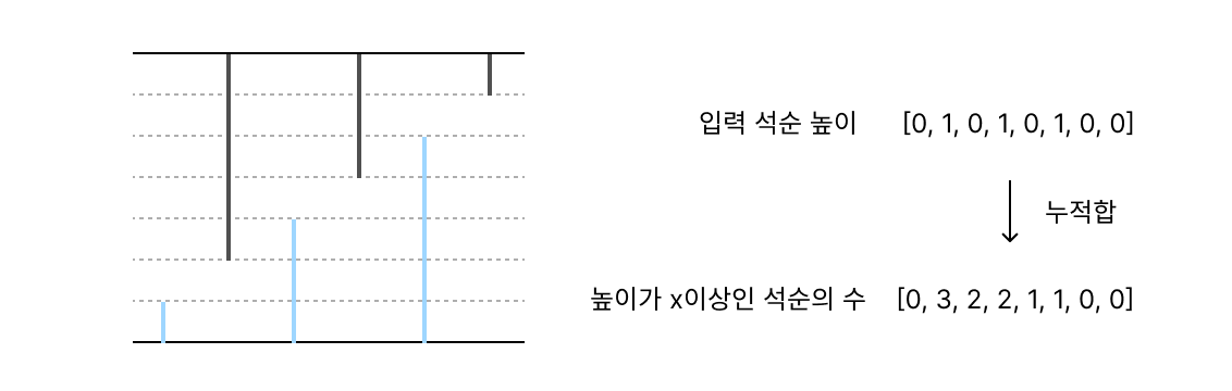 1. `rockIslands`에 `0`을 넣고 이후는 돌섬의 위치를 저장하고, 입력을 다 받으면 오름차순 정렬한다.